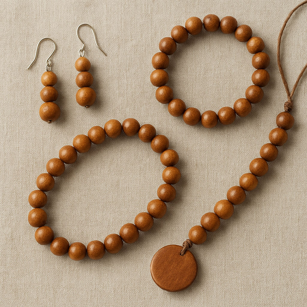 Oprócz koralików drewnianych można dodać elementy naturalne, takie jak kamienie półszlachetne, muszle czy skórzane frędzle. Nanosząc na koraliki cienką warstwę lakieru lub bejcy, uzyskuje się efekt połysku lub kontrastową kolorystykę. Przy podkreślaniu rustykalnego charakteru warto zastosować wosk pszczeli, który wydobywa głębię koloru i chroni drewno przed wilgocią.
