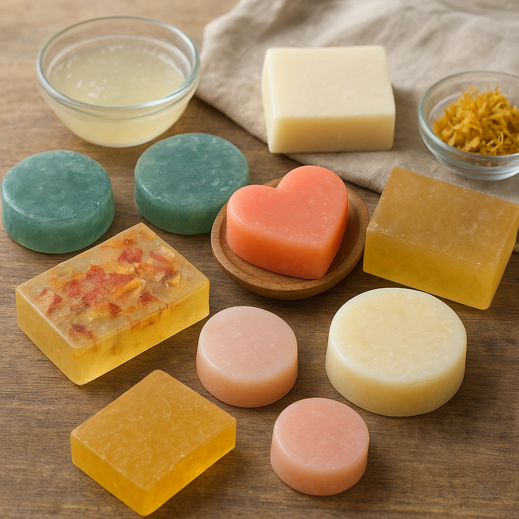 - Baza glicerynowa – dostępna w wersji przezroczystej lub białej, zapewnia nawilżenie i delikatność.