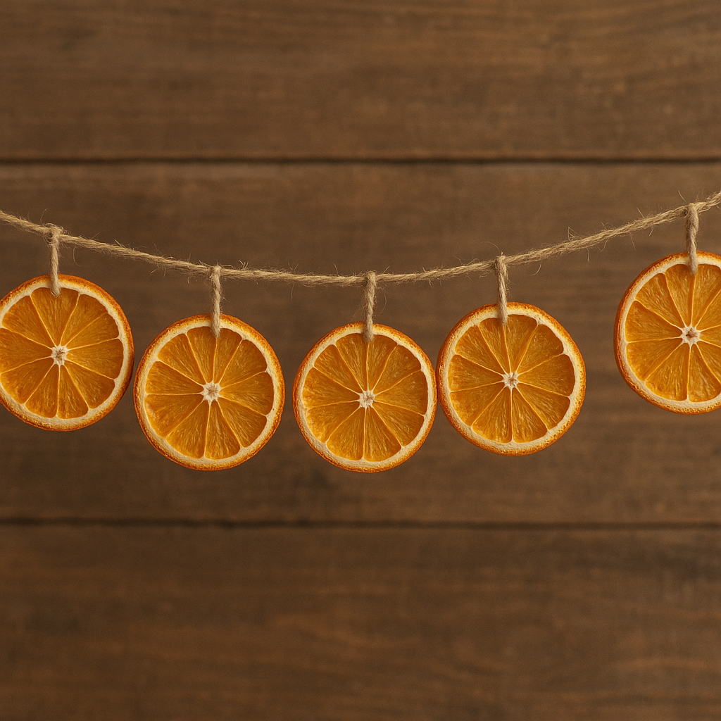 Girlanda z suszonych plasterków charakteryzuje się dużą trwałośćą, pod warunkiem przechowywania jej w suchym miejscu. Unikaj bezpośredniej ekspozycji na wilgoć i intensywne słońce – mogą osłabić kolory i strukturę owoców.
