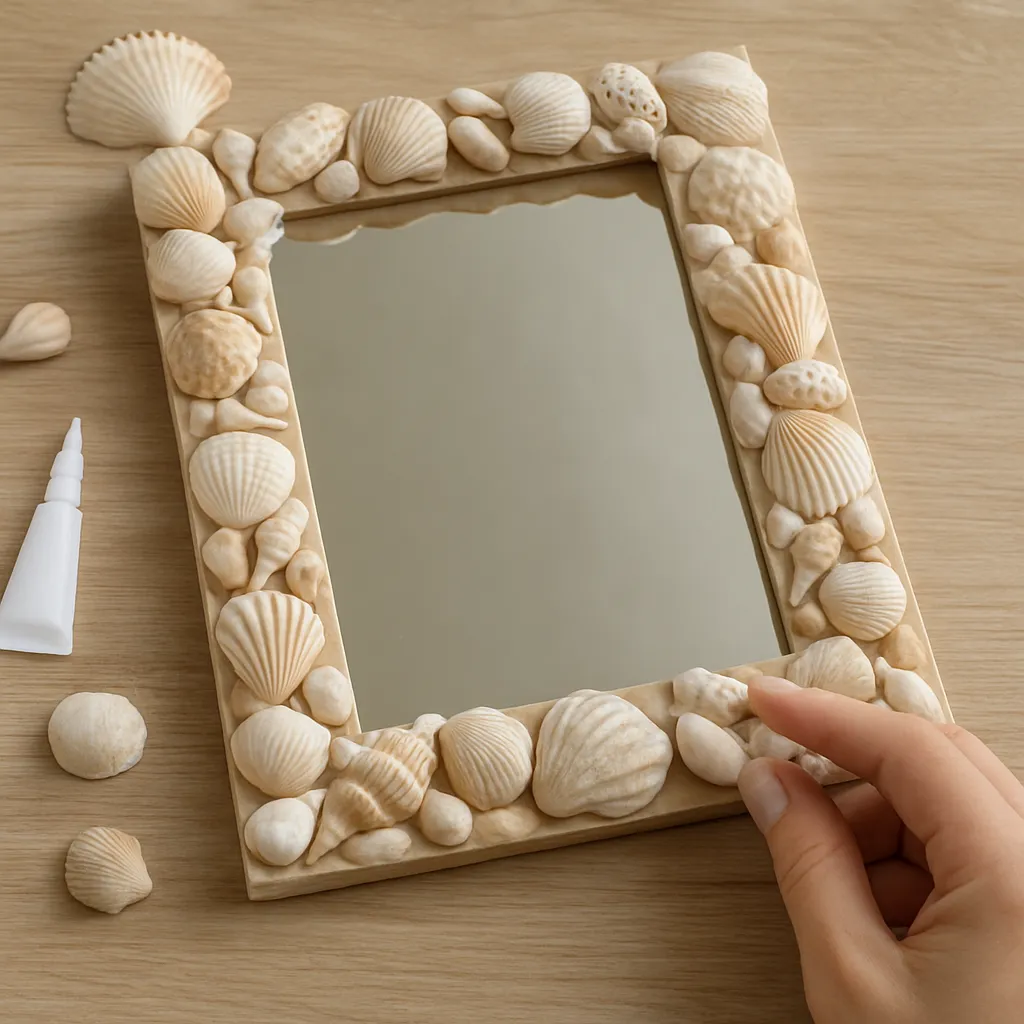 Przed dekorowaniem warto dokładnie oczyścić i przygotować powierzchnię ramki. Dzięki temu muszle będą trzymać się mocniej, a całość uzyska schludny wygląd.